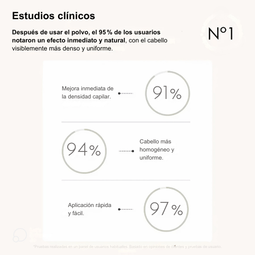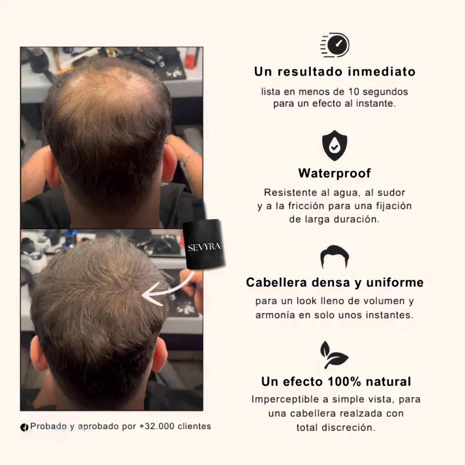 Un polvo capilar de camuflaje instantáneo, formulado con microfibras naturales de algodón, que disimula la calvicie y las zonas poco densas en solo 10 segundos, sin cirugía ni tratamientos invasivos.